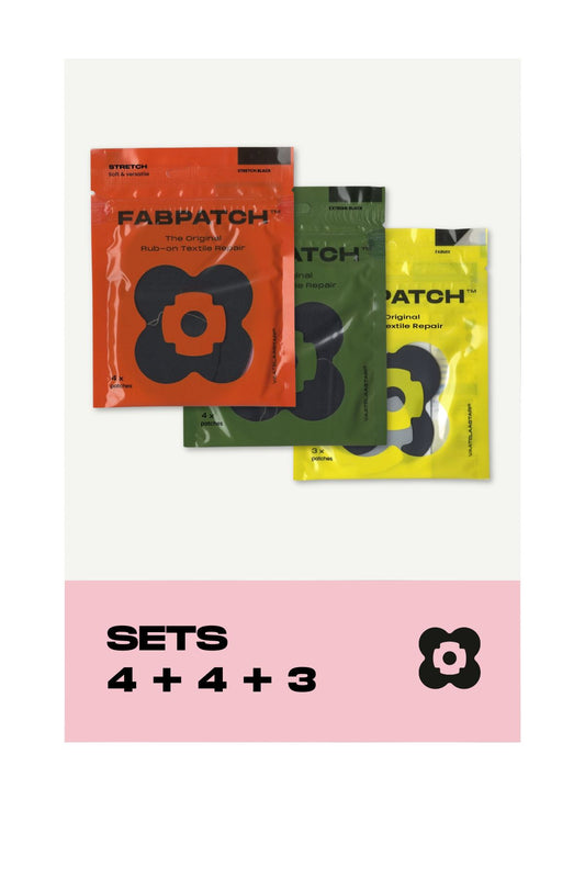 Best sellers -setti sisältää kolme suosittua Vaatelaastari FabPatch -tuotetta: