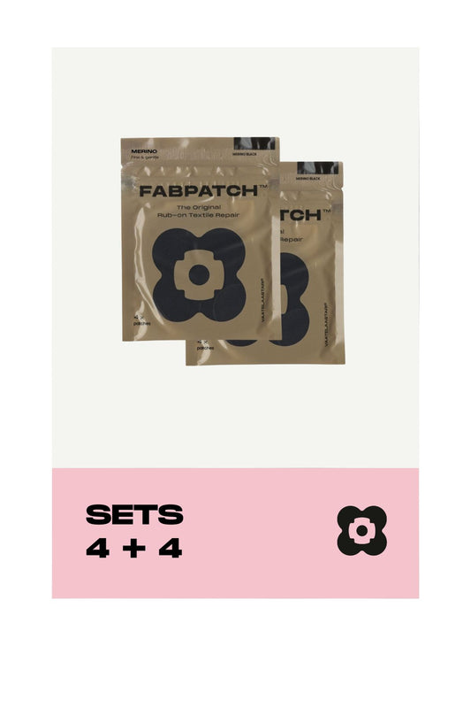 The Merino Set textile patches give new life to the clothes and accessories of anyone who wears merino wool often. Patch by rubbing — no ironing or sewing needed!
