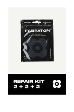 The Textile repair kit includes a collection of black FabPatch™ patches in various materials.